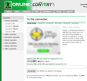 動画や音楽、画像、ドキュメントなど様々なファイル形式をオンライン上で変換できる! 7ZやZIPに圧縮も可能